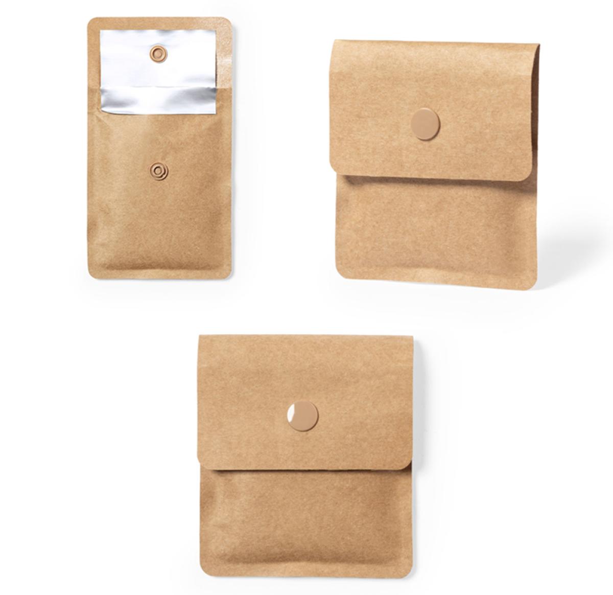 Nature line pocket ashtray, with laminated recycled paper outside and fireproof aluminium inside. Flap with matching clasp closure.