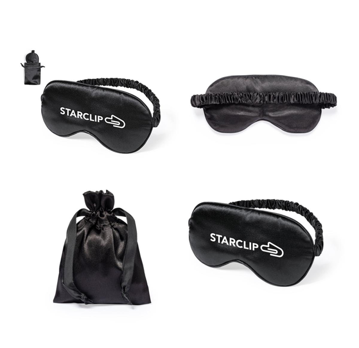Relaxation mask in soft satin, with matching elastic band. Presented in an individual satin pouch with matching drawstring closure.