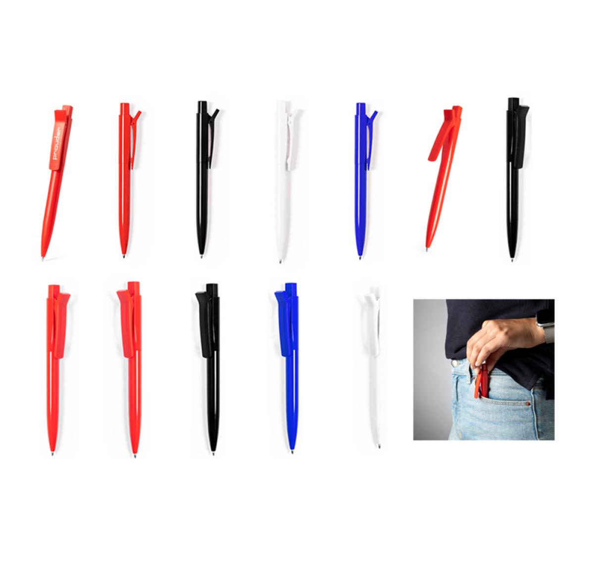 Stylish ball pen with peg clip, made in resistant ABS with a glossy finish. Available in a wide range of colours, with jumbo cartridge and blue ink.