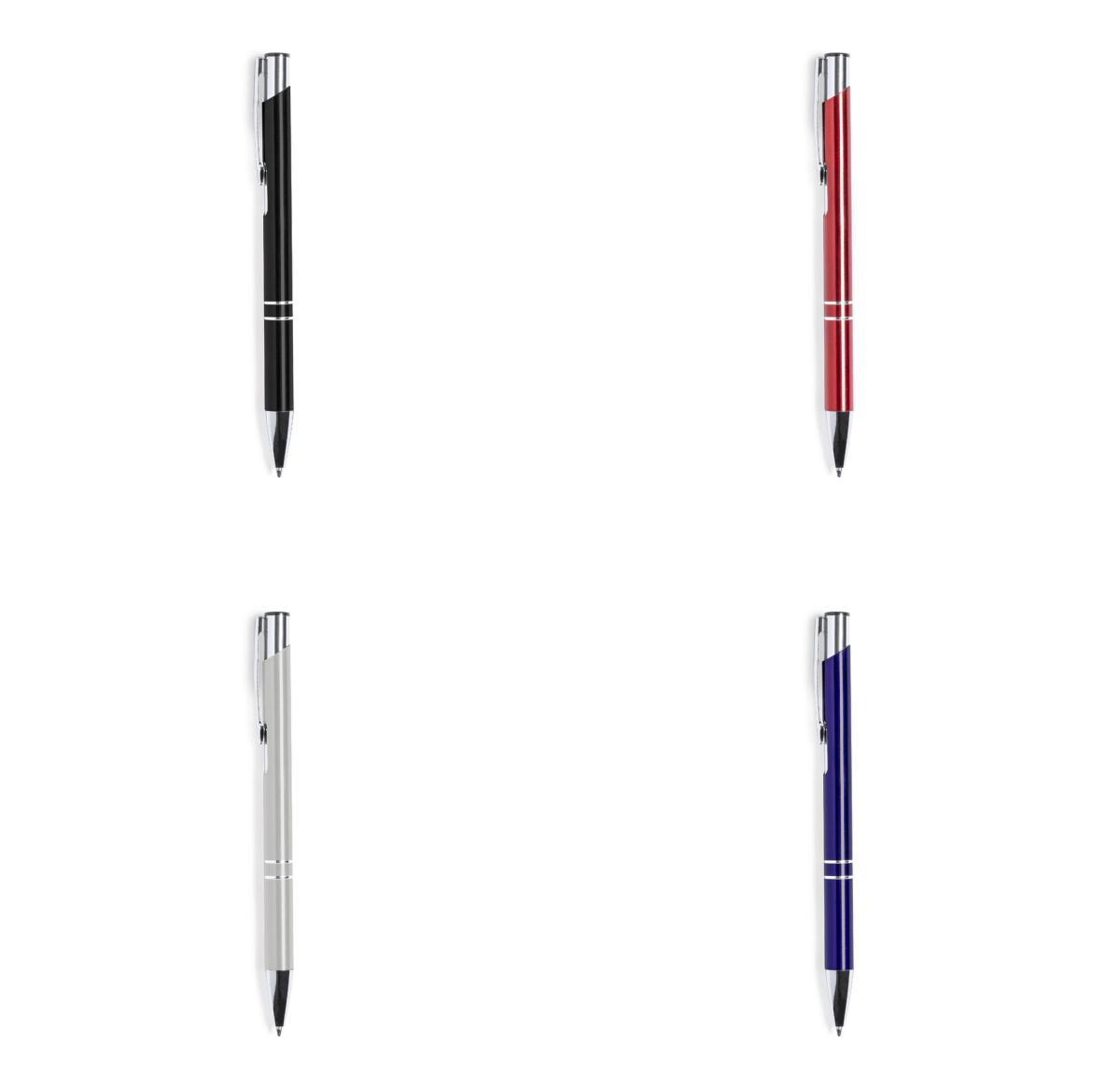Eco-friendly ball pen made of recycled aluminium. Push-button mechanism, with barrel available in a wide range of metallic colours and chrome plated fittings. With metal clip and recycled aluminium logo on the top of the pen. Jumbo cartridge and blue ink.