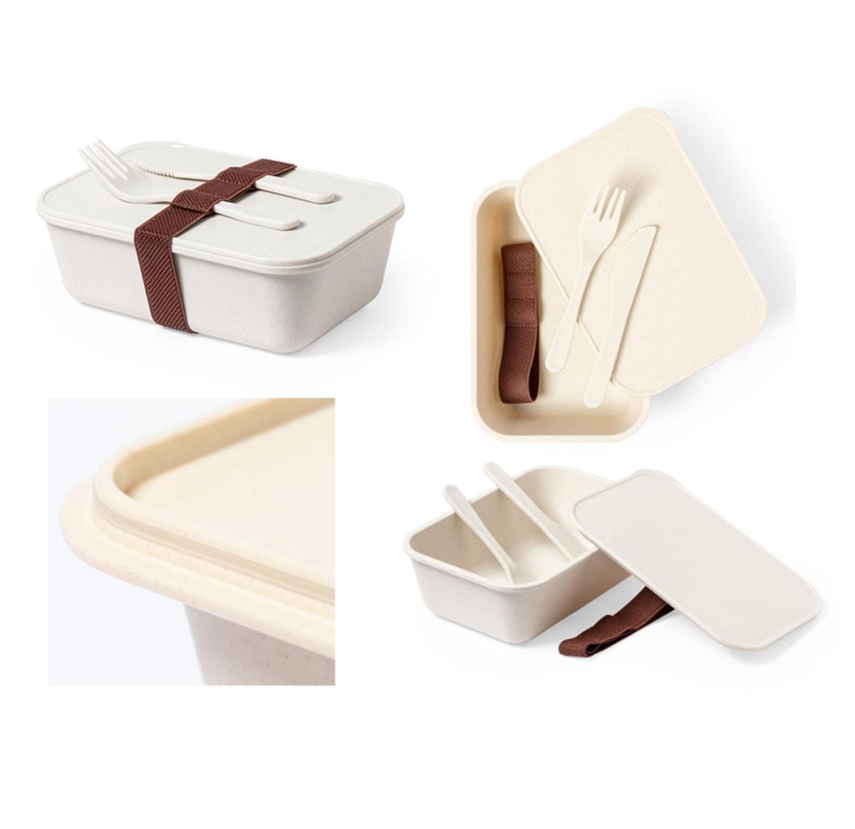 Lunch box made of BPA-free veined PP. 1 l capacity, includes elastic safety band with fork and knife. Food Grade certified, guaranteeing safety when food comes into contact with the material used to manufacture the product.