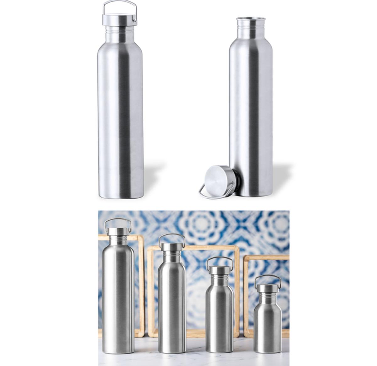 Jumbo size, 1,5 l capacity bottle, made in stainless steel with glossy finish. With matching, original screw cap in stainless steel, and integrated handle. BPA free and presented in an individual box with kraft design.