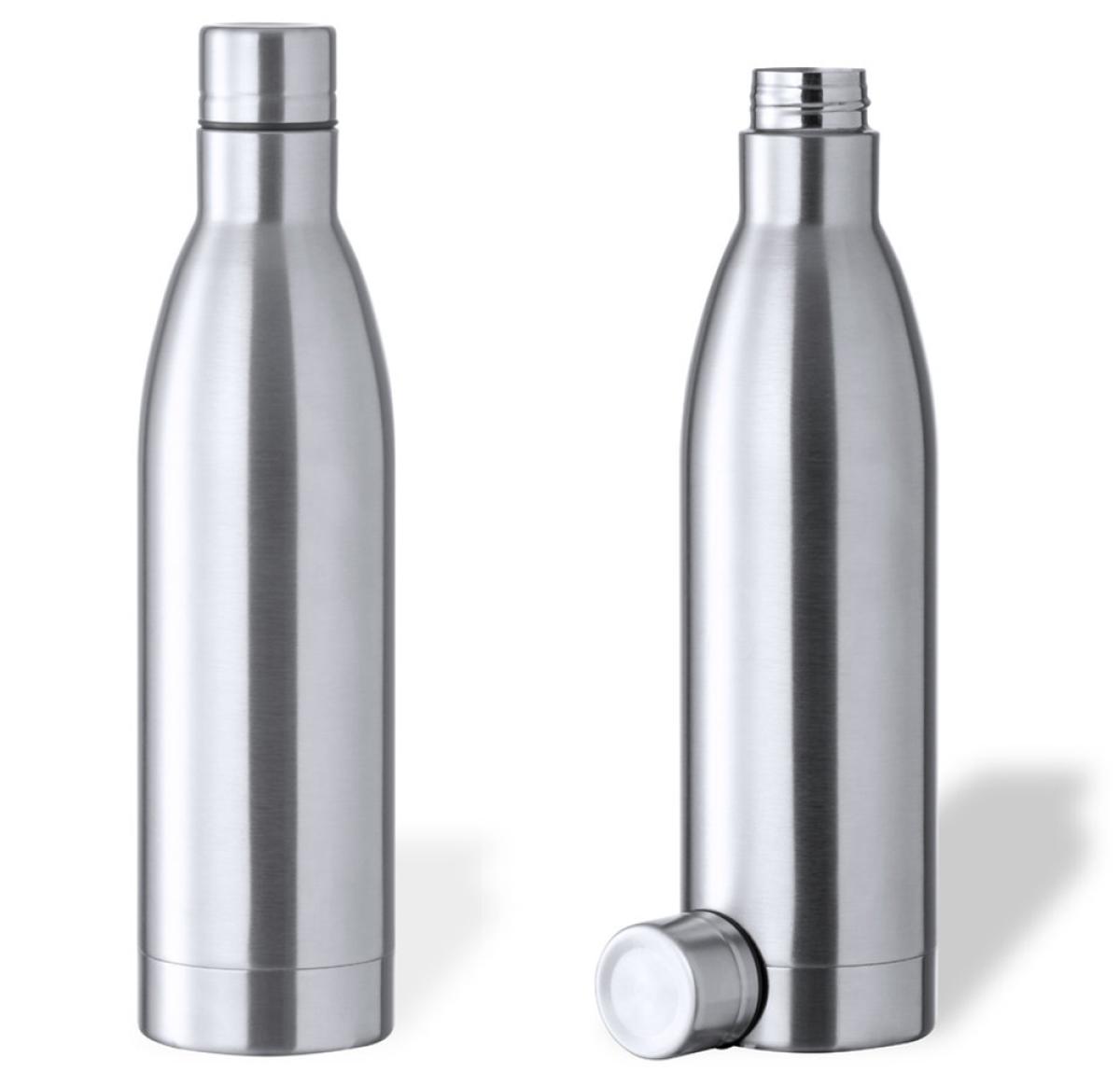 1 l capacity bottle, in stainless steel with shiny finish. With matching screw cap in stainless steel, BPA free. Presented in an individual box with kraft design.