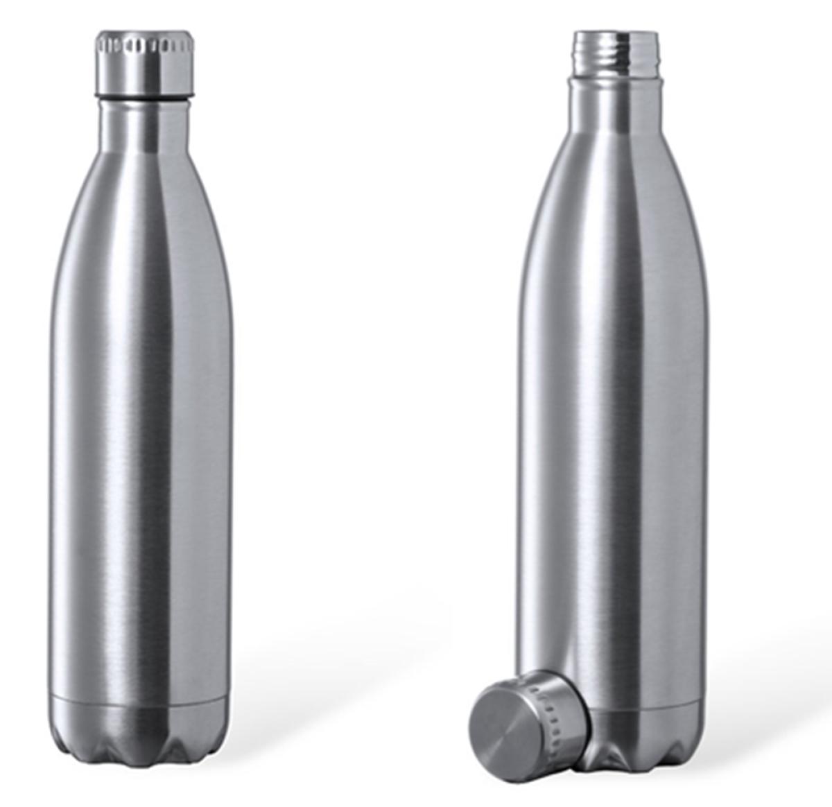 1 l capacity bottle, in stainless steel with shiny finish. With matching screw cap in stainless steel, BPA free. Presented in an individual box with kraft design.