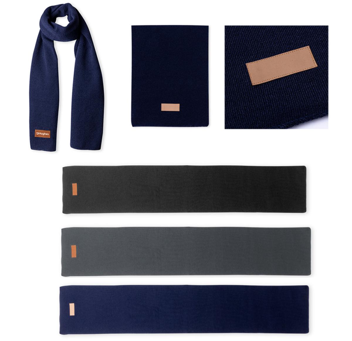 Unisex scarf made of elastic acrylic material. With a stitched PU patch for branding and available in a wide range of colours.