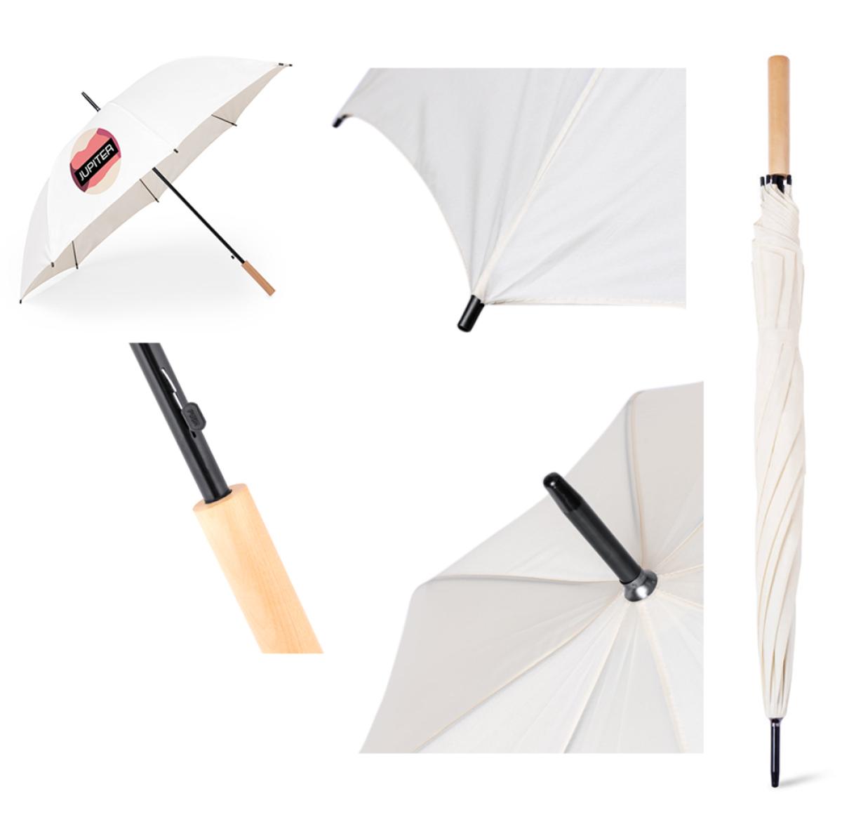 XL size, 8 panel umbrella. 130 cm diameter, made of durable 190T pongee material. Automatic opening and windproof mechanism. Black fibre ribs, with curved handle and velcro closure strap. Available in a wide range of colours.