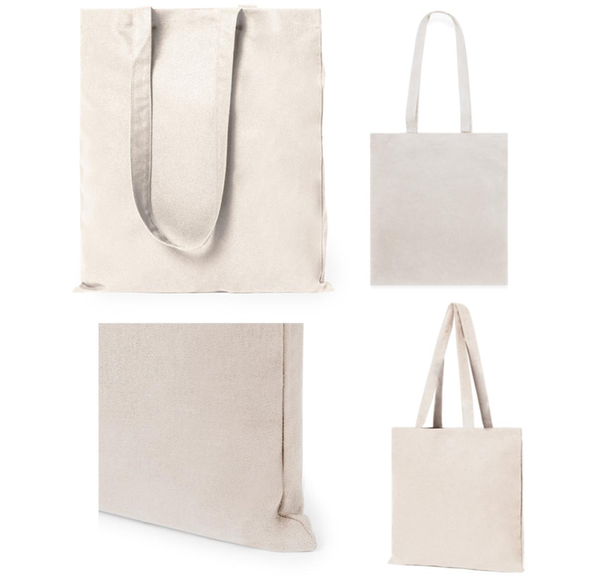 Bag made in 100% cotton, natural finish and 140g/m2. Stitched finish, with base gusset and long reinforced handles (70 x 2.5 cm). Resistance up to 6 kg in weight.