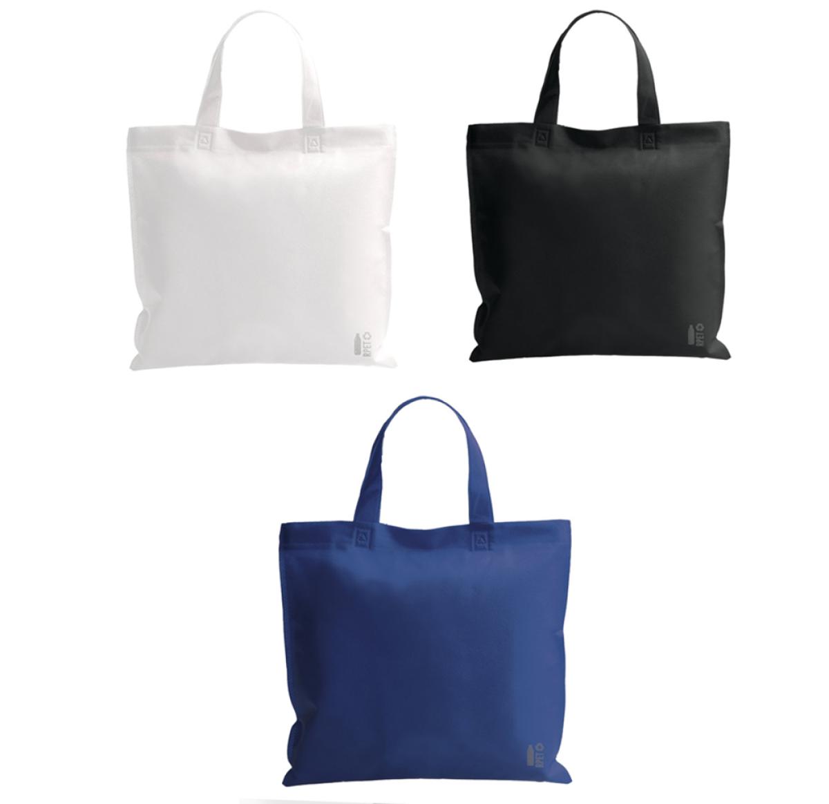Nature line bag made in non-woven RPET 70g/m2. Heat-sealed finish and with short reinforced handles (36 x 3 cm). Available in a wide range of colours, with RPET logo on lower right corner. Resistance up to 6 kg in weight.