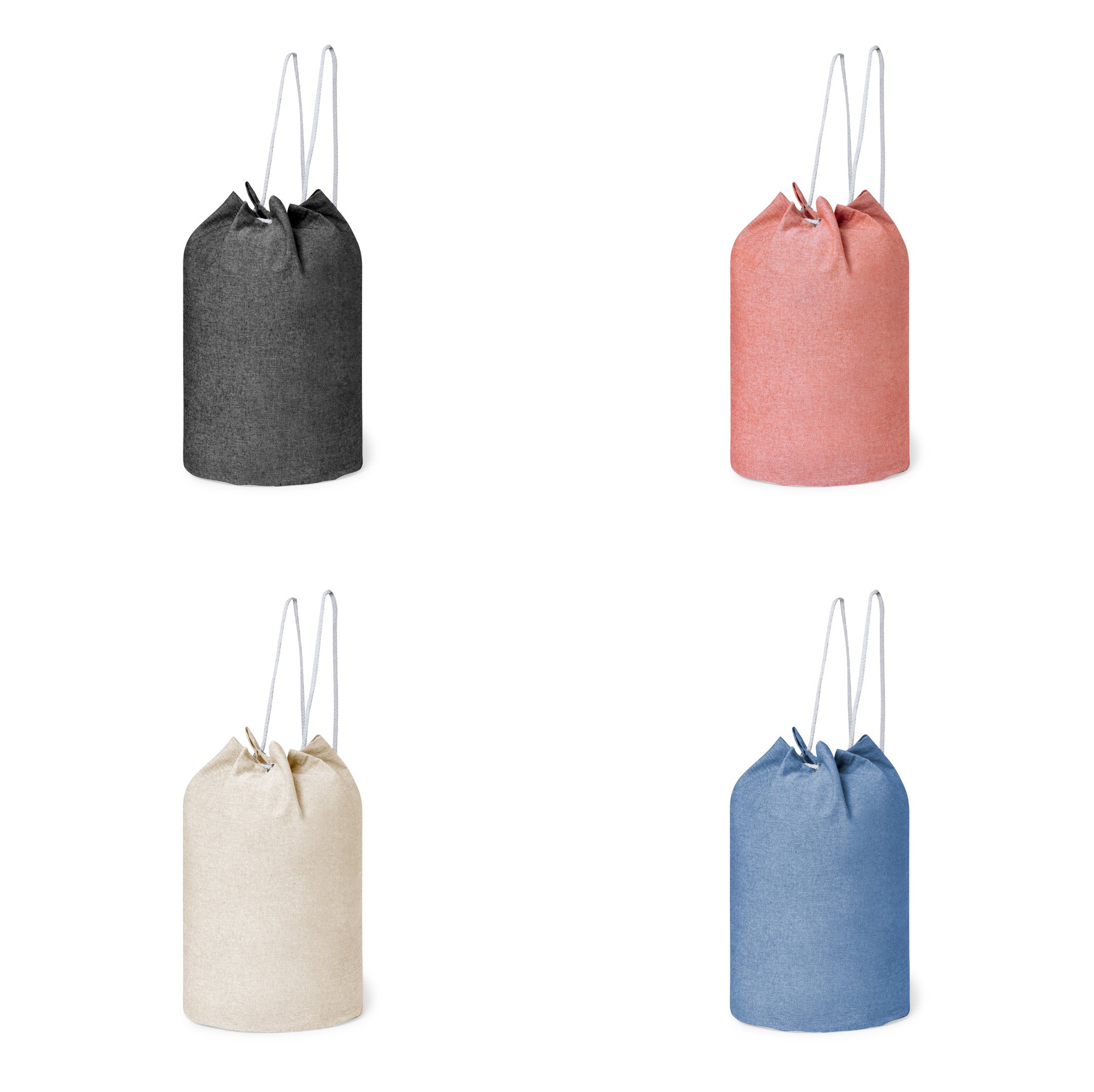 Nature line rucksack made of 100% recycled cotton 200g/m2. With cotton drawstring closure and resistant metal eyelets. Available in a wide range of colours, outside label with the organic cotton distinctive.