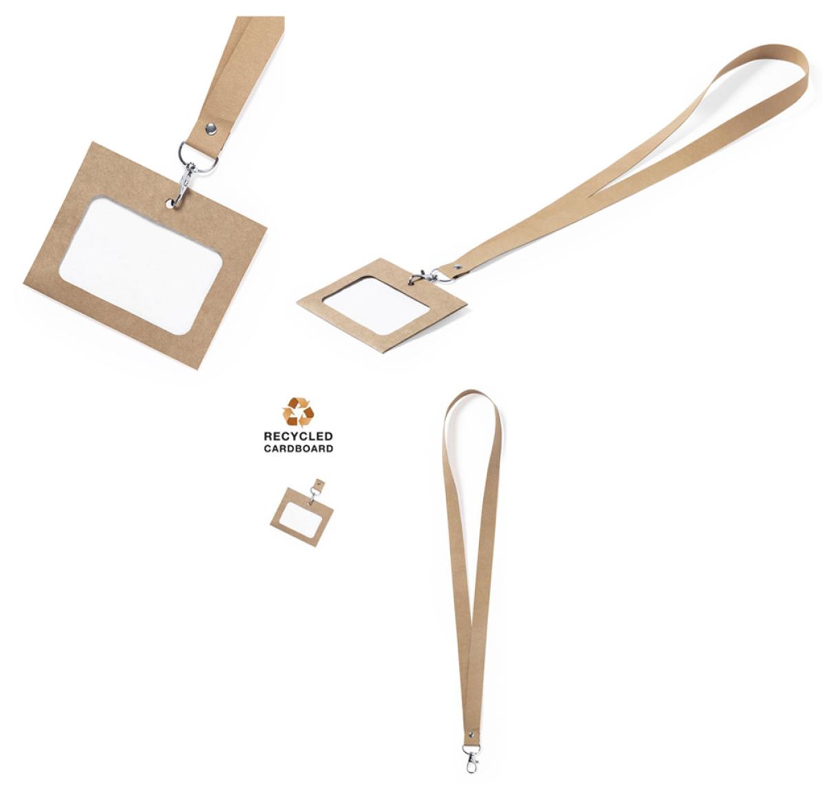 Nature line lanyard made of resistant recycled cardboard. With metal swivel carabiner.