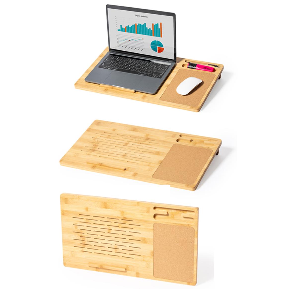 Nature line, multifunctional organiser mat. Made in bamboo and natural cork, helping the sustainability of the planet. Including holders for laptops, tablets and other mobile devices. With integrated mouse pad and presented in an individual box with kraft design.