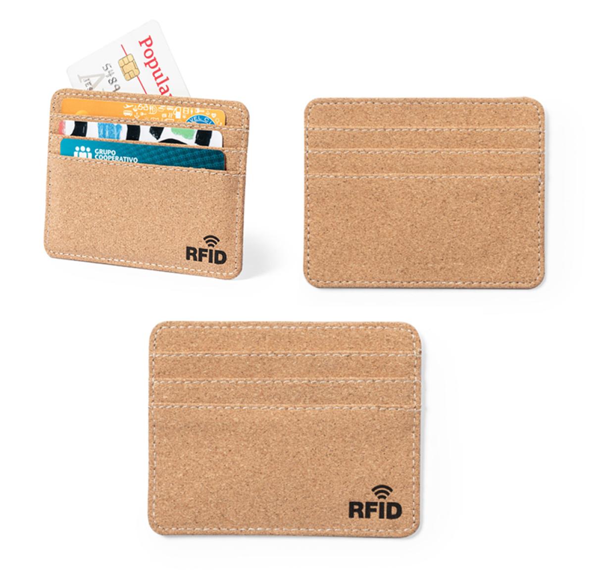 Elegant card holder made of natural cork. With 6 independent compartments for cards. RFID (Radio Frequency Identification) security technology that keeps card data safe. RFID distinctive outside.
