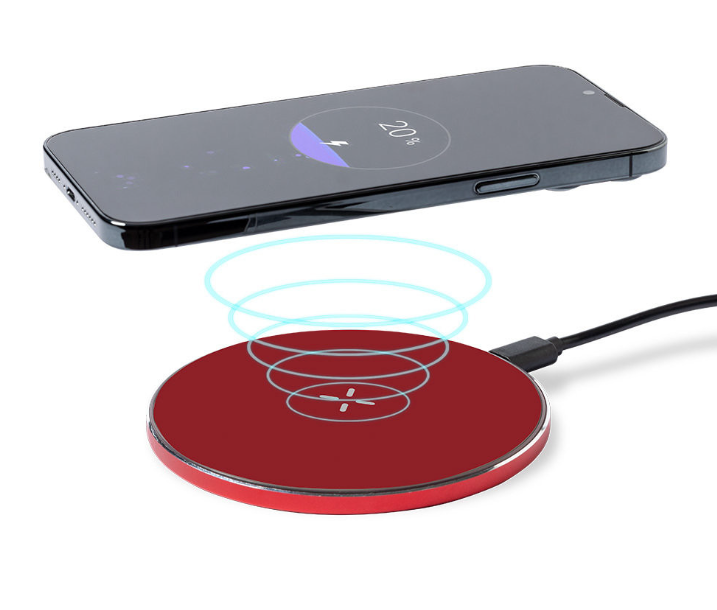 Wireless charger 15W in round design. Made of recycled aluminium, a material with almost infinite recycling possibilities, keeping its original properties and consuming less energy in this process. Compatible with devices equipped with Qi wireless charging technology. Non-slip base, with Type-C charger cable included, and available in a wide range of colours. Presented in an individual kraft design box, with instruction manual in English and Spanish.