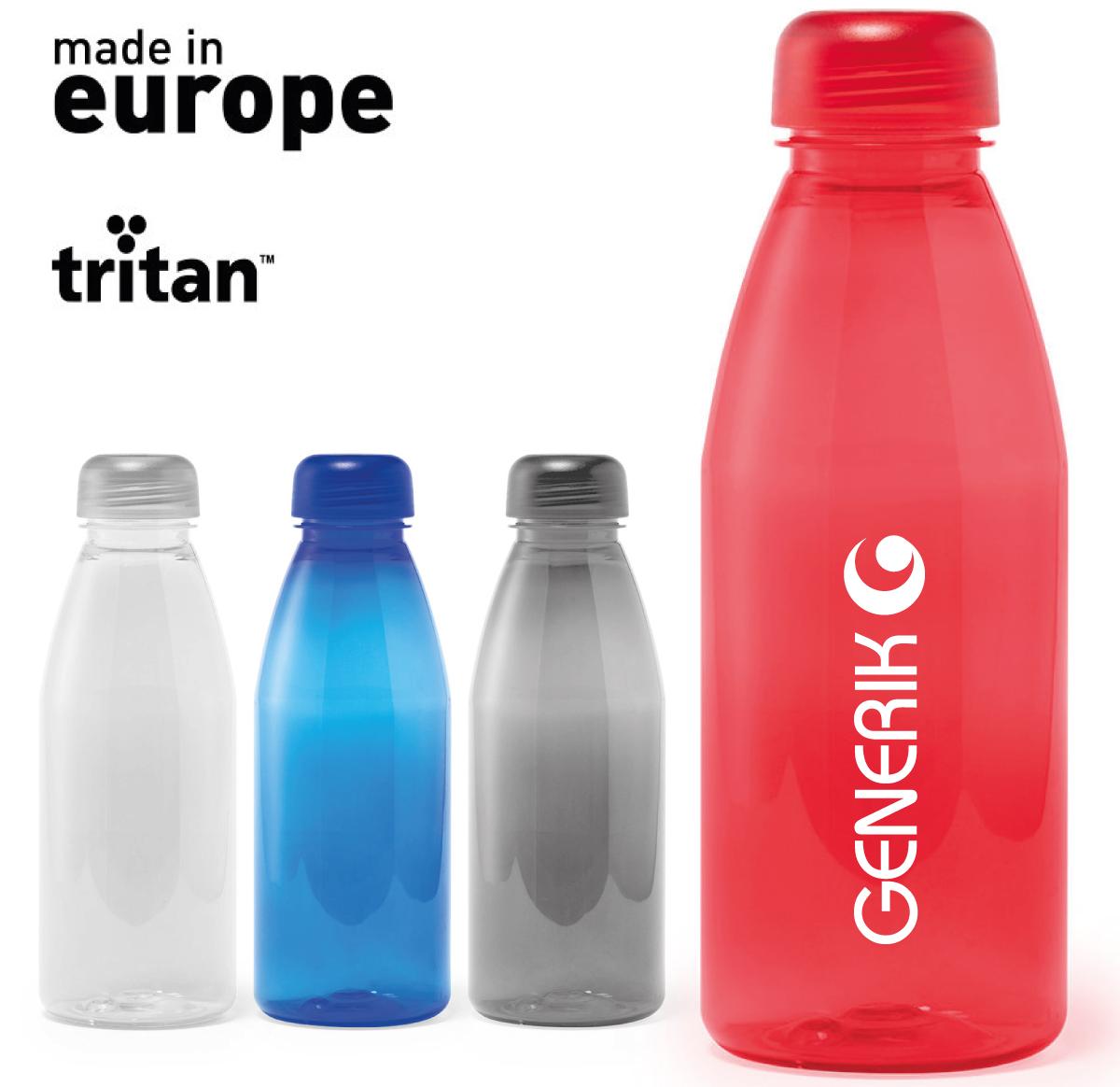 550 ml capacity bottle made in tritan material, heat resistant and BPA free. With safety screw lid and available in a wide range of colours, including the Made In Europe logo.