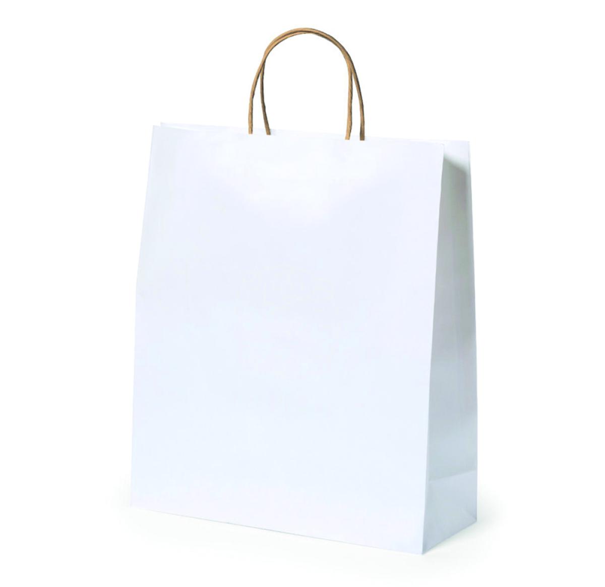 Nature line bag, made of 100g/m2 recycled paper in white finish, with short reinforced handles in natural colour and gusset. Resistance up to 8 kg in weight.