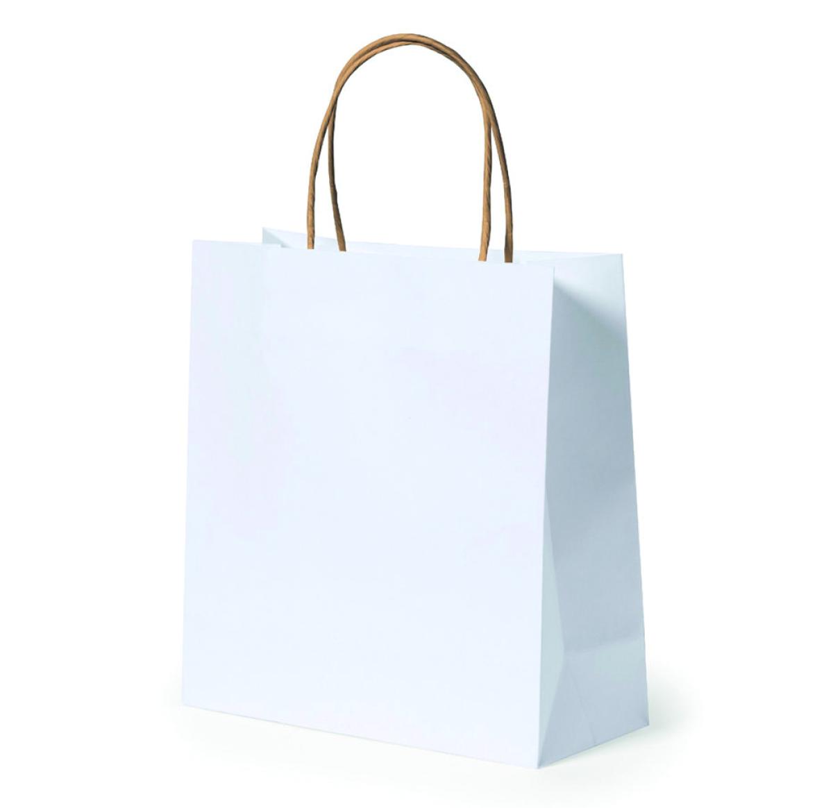 Nature line bag, made of 100g/m2 recycled paper in white finish, with short reinforced handles in natural colour and gusset. Resistance up to 6 kg in weight.