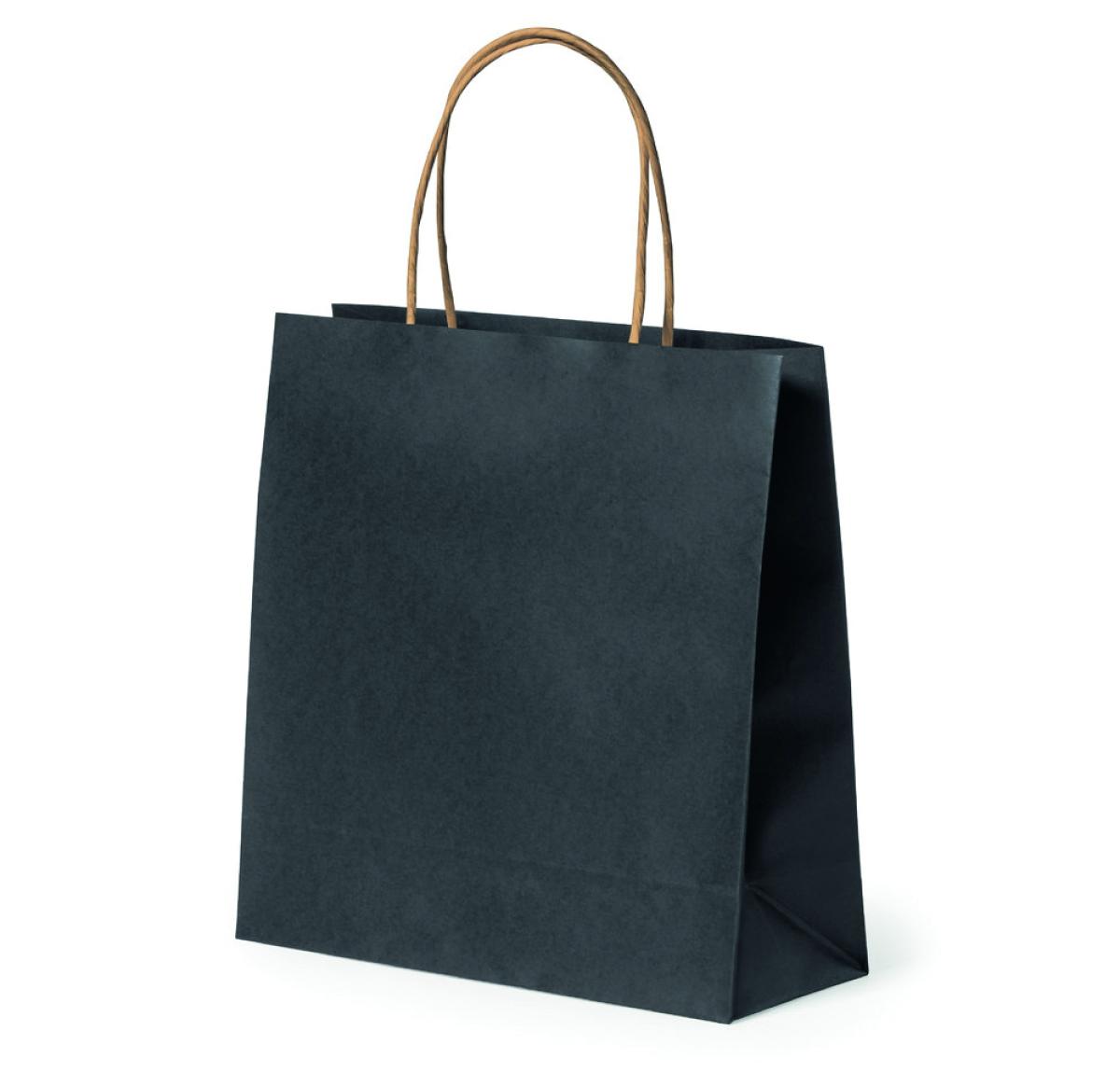 Nature line bag, made of 100g/m2 recycled paper in black finish, with short reinforced handles in natural colour and gusset. Resistance up to 6 kg in weight.