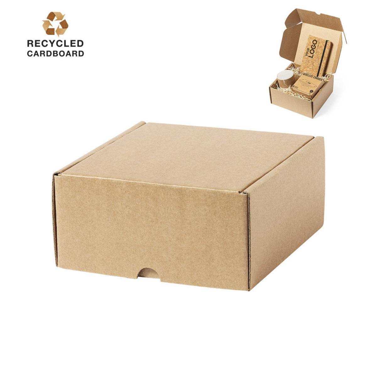 Presentation box size S, made of recycled corrugated cardboard with kraft finish. In line with the market trend towards integral gift sustainability, offering solutions of recycled origin, aimed at supporting the improvement and conservation of our planet.