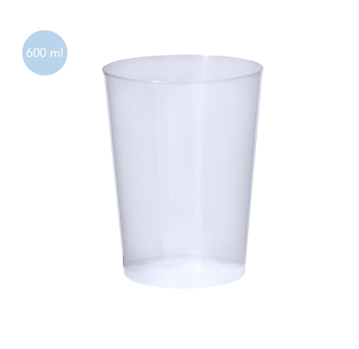 600 ml capacity cup in durable and flexible PP material. Reusable and in a translucent finish. 600 ml