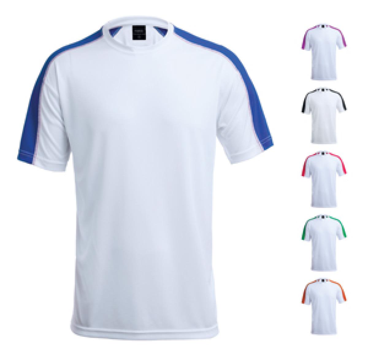 Technical t-shirt for adult in dynamic material, highly breathable and made of 100% polyester fabric of 135g/m2. In an original white colour design, with colour strips in sleeves. Available in a varied colours and in sizes S, M, L, XL, XXL.