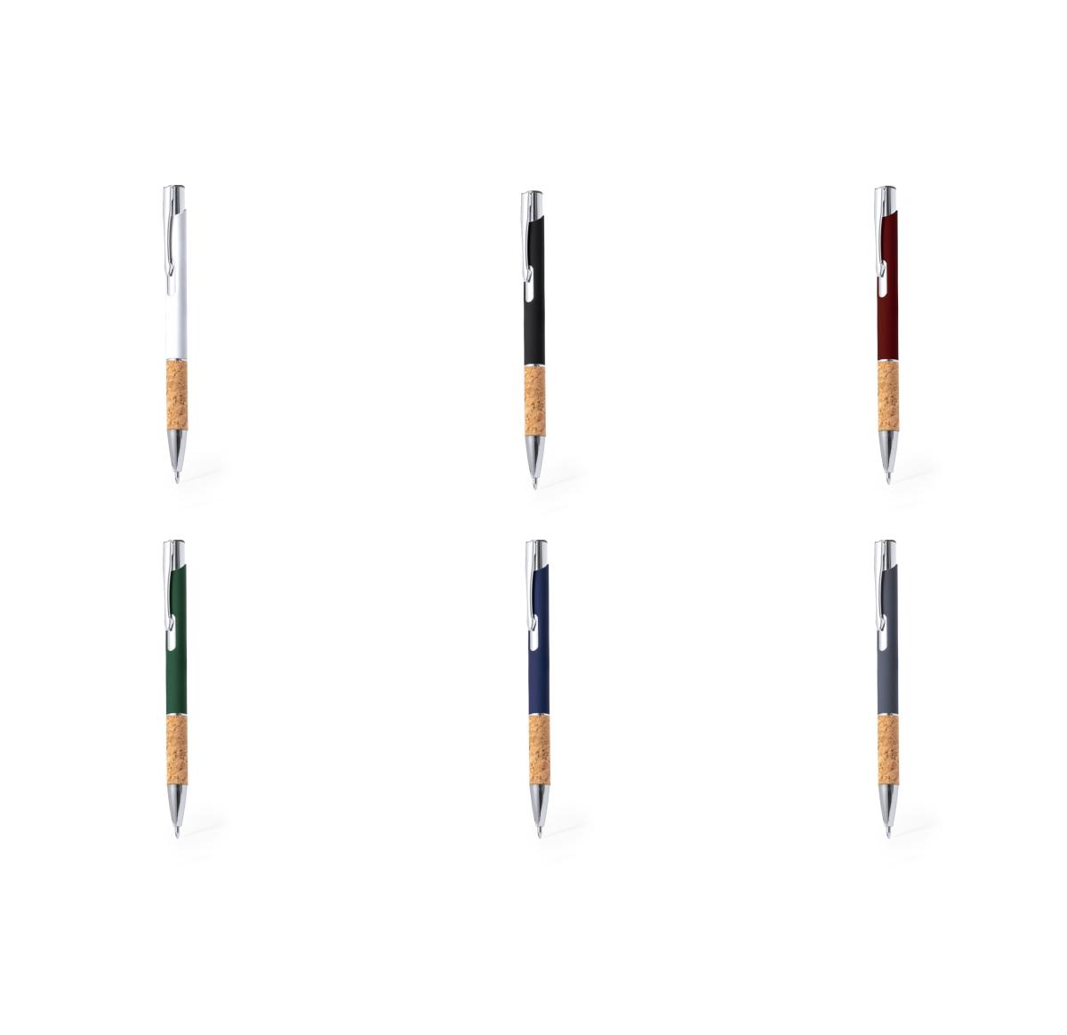 Elegant ball pen in nature line, with push-button mechanism. Durable aluminium barrel with rubberised finish and cork grip, with barrel in a wide range of distinctive colours. Metal clip, with retractable push button and blue ink. Presented in an individual recycled pouch. Made with plant-based elements to encourage the use of natural raw materials and reduce pollutant emissions.