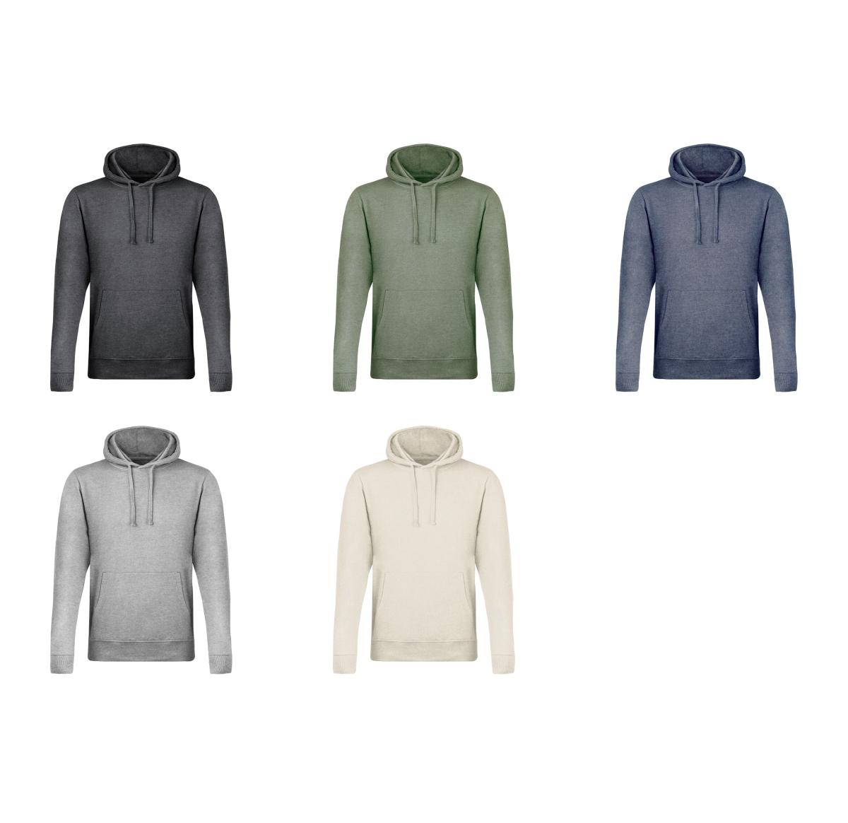 Lightweight unisex sweatshirt with kangaroo pocket and lined hood in plain knit, with matching colour strings. Made of 175gsm extra soft touch cotton/polyester blend material. With set-in sleeves, collar, cuffs and waistband in matching knit. Available in a wide range of two-tone effect colours, and a natural colour in a plain effect, perfect for any occasion. Available in sizes XS, S, M, L, XL and XXL.
