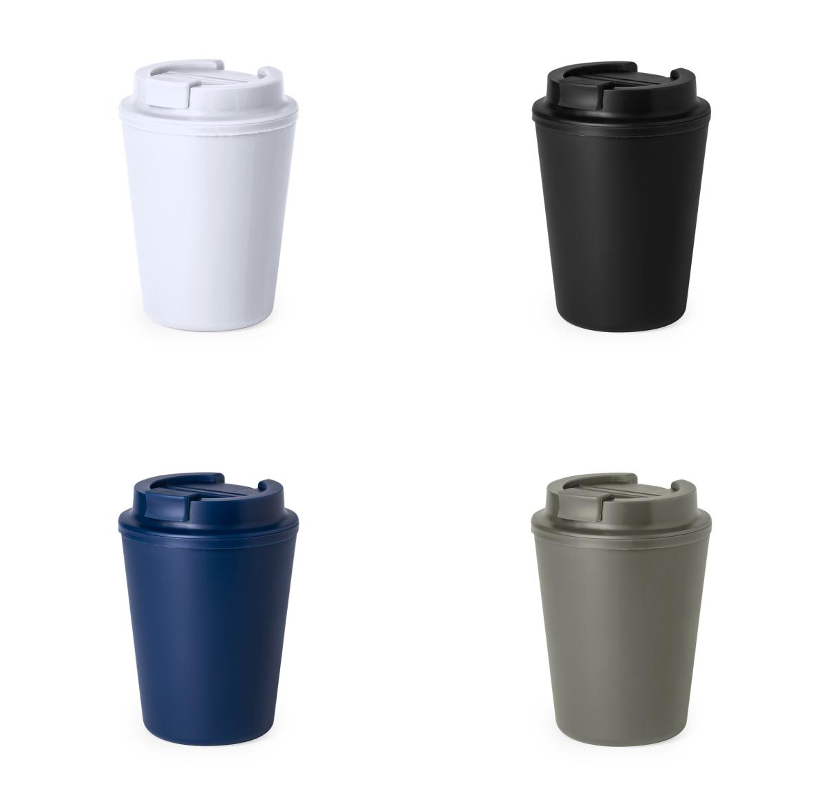 Thermal cup made of durable, double-walled PP with 300ml capacity. Safety lid with dispenser and easy open, BPA free. Food Grade certified, guaranteeing safety when food comes into contact with the material used to manufacture the product. Matt finish and available in a wide range of colours. Presented in an individual recycled bag. Recycled PP is a recycled and highly recyclable plastic, extremely resistant and suitable for a multitude of applications.