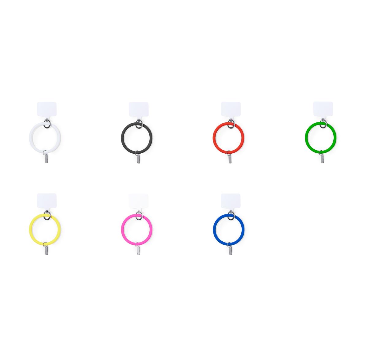 Genuine mobile phone holder bracelet in flexible silicone, adaptable to all types of wrists. With carrying accessory to place between the case and the smartphone. With special metal accessory for laser engraving and large printing area in PP. Available in a wide range of colours.