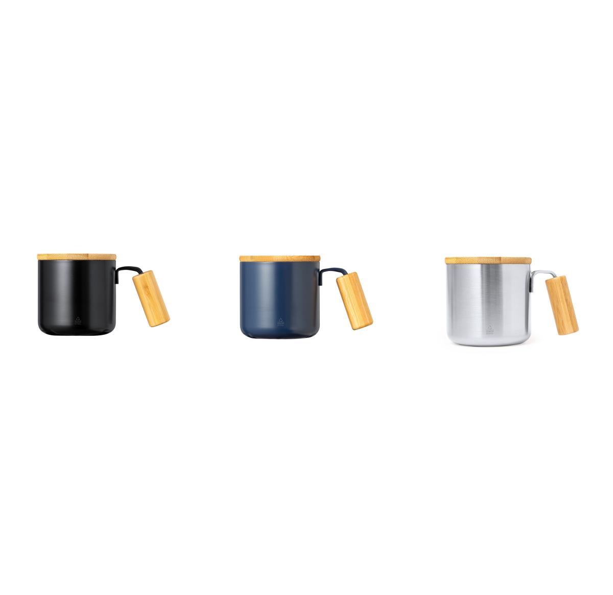 Unique double walled 330ml capacity thermal mug. Made of recycled stainless steel, with bamboo lid and matching comfort grip handle. With Recycled Stainless Steel logo. Presented in an individual kraft design box and in a recycled bag. Steel is one of the most demanded materials and can be found almost everywhere, from everyday products to major constructions. With countless properties, including durability and a high level of reusability, it is a much valued alternative for sustainable solutions. Properly treated, new resources of infinite use can be obtained.