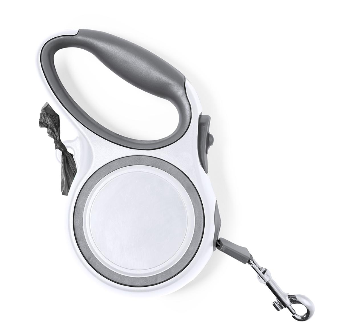 Extendable 3-metre pet lead. Made of durable polyester, with robust ABS casing. Includes integrated brake button, with comfortable ergonomic handle and practical hook for bags. With swivel metal carabiner and presented individually in a kraft design box