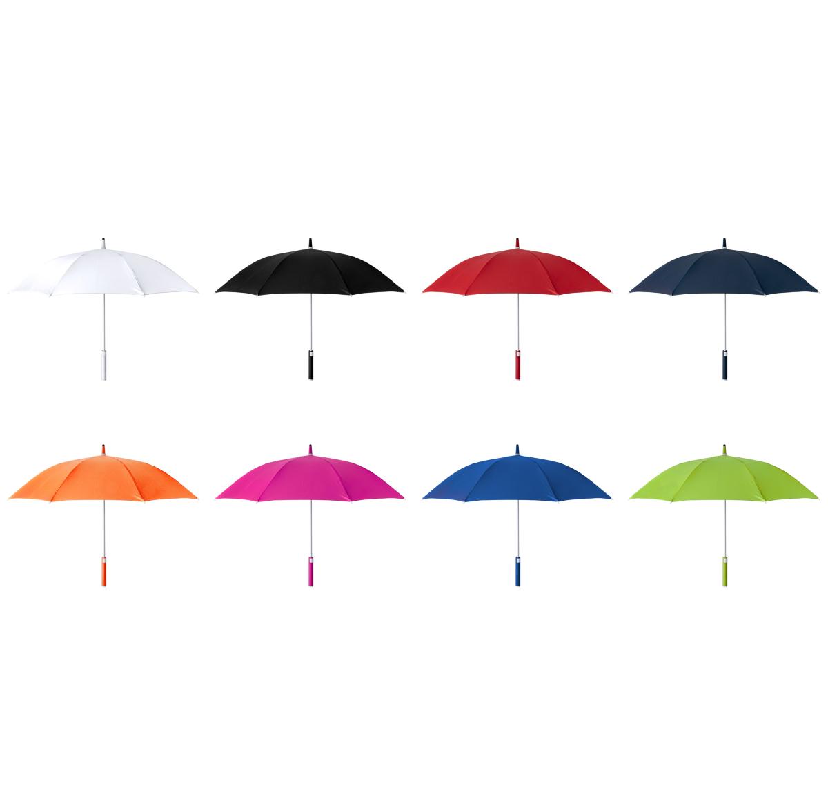 105cm diameter umbrella in 190T RPET polyester material. Automatic opening, with windproof mechanism, velcro fastening and fibreglass ribs. Straight handle in soft ABS with rubber touch, in matching colour with the fabric. With RPET label and available in a wide range of colours. RPET material is made from recycled plastic, thus promoting the reuse of plastic waste and helping the sustainability of the planet.