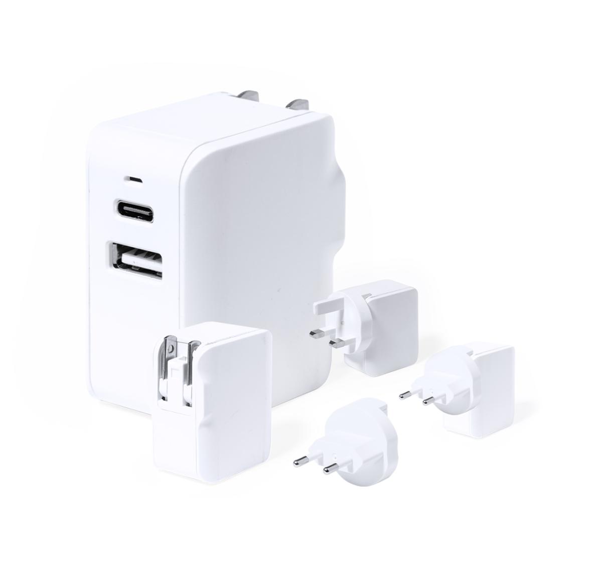 Complete plug adapter, with a compact and portable design. With USB and Type-C outlets, especially suitable for travel and with multi-region adapters for USA, Europe, Asia, UK and Australia. LED power indicator and individually packaged in a kraft design box.