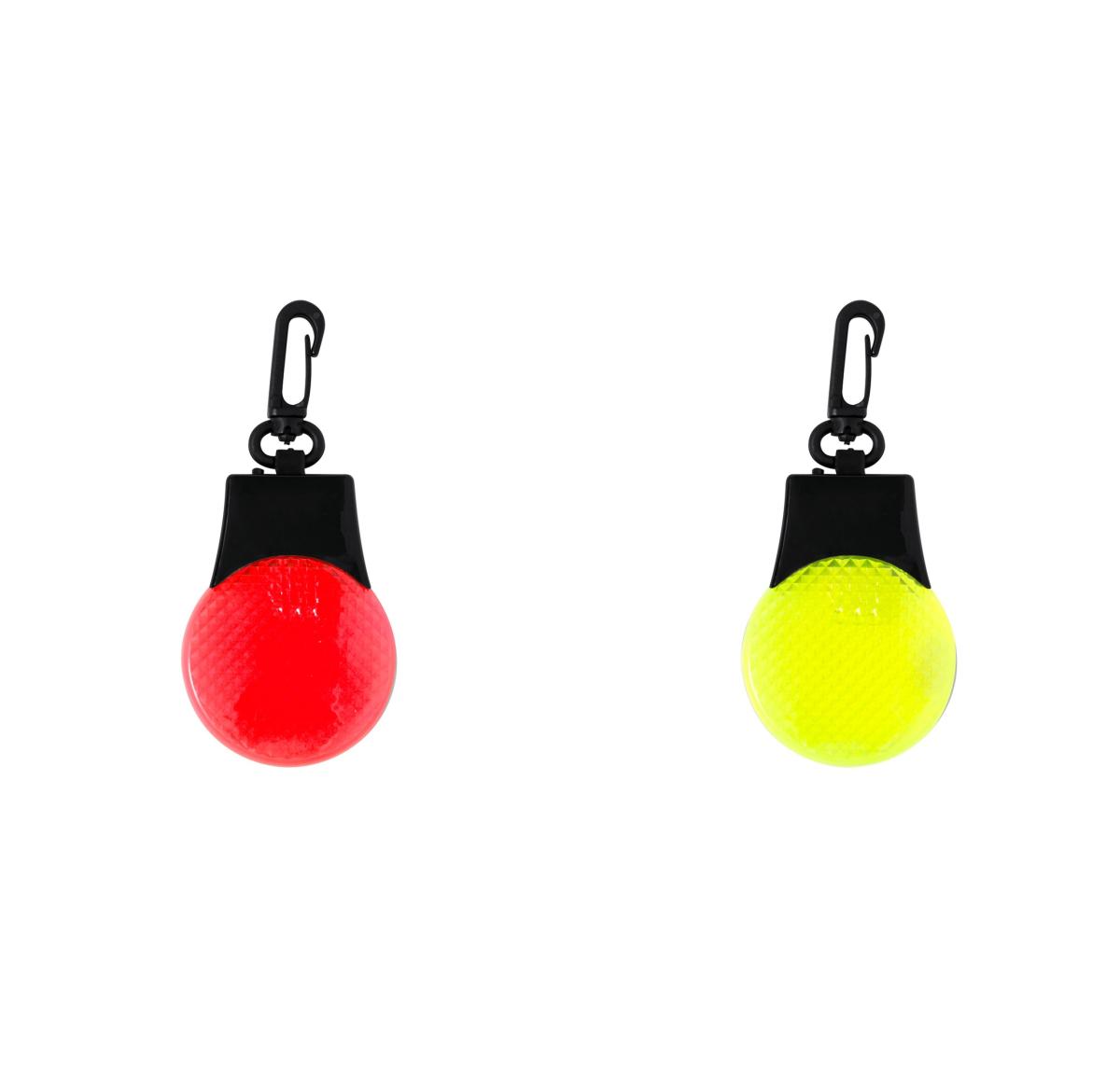 High visibility safety light. Equipped with 3 LED lights, with fixed lighting position (two levels of intensity) and flashing light. With swivel carabiner and available in bright colours. Powered by button cell battery (included) and presented individually in a kraft design box.