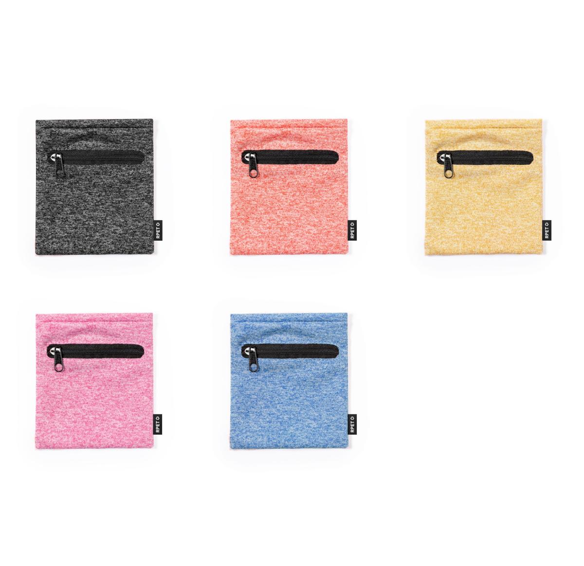 Practical wristband in soft RPET polyester. Perfect accessory for storing small items thanks to its pocket with black zip closure. Available in a wide range of colours, with RPET label. RPET material is made from recycled plastic, thus promoting the reuse of plastic waste and helping the sustainability of the planet.
