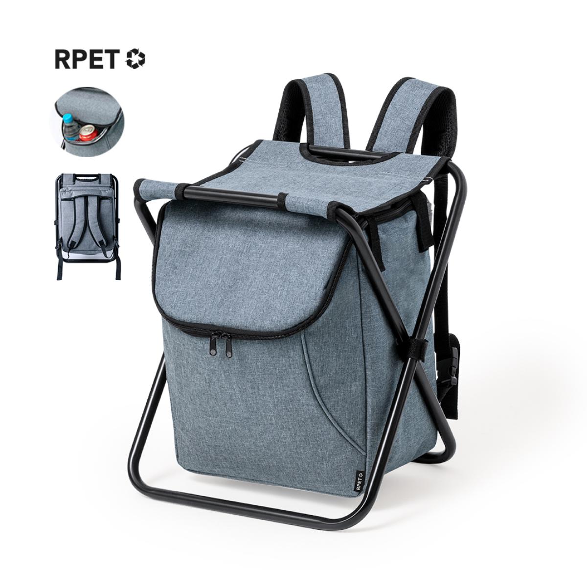Folding chair with Aluminium body and cooler bag integrated in the seat. Made in RPET 600D, with reinforced seams, zip closure and practical shoulder handles for transport, which can be kept in the dedicated pocket. With nylon reinforcement strip on the legs and PEVA isothermal interior. Presented in an individual bag. RPET material is made from recycled plastic, thus promoting the reuse of plastic waste and helping the sustainability of the planet.
