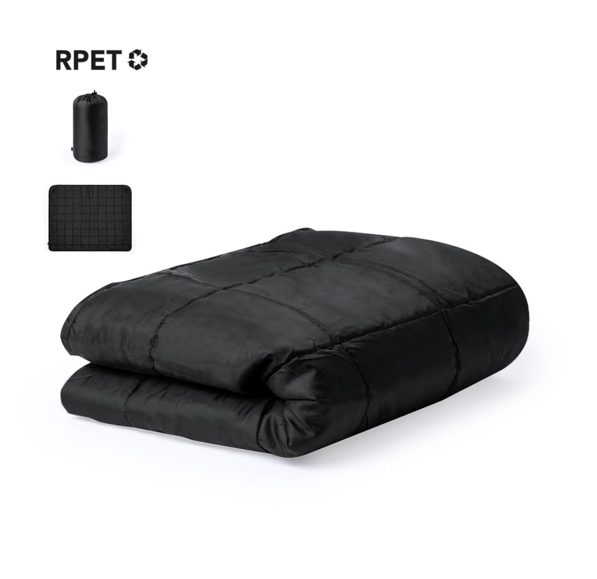 Premium picnic blanket made of durable 190T RPET polyester with black finish. Foldable, with adjustable self closing sleeve in 190T RPET polyester. In size 120x150 cm, easy to fold and compact in size, with RPET logo. RPET material is made from recycled plastic, thus promoting the reuse of plastic waste and helping the sustainability of the planet.