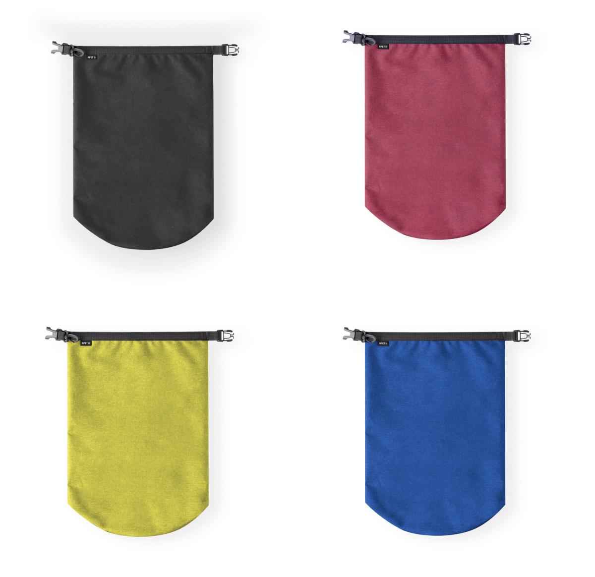 Waterproof bag with 5L capacity, made of durable 300D RPET. Security zip, handle with buckle adjustment and carabiner included. Distinctive RPET logo on the closure. Available in a variety of two-tone colours, and presented in individual recycled bag. RPET material is made from recycled plastic, thus promoting the reuse of plastic waste and helping the sustainability of the planet. 5 L. Waterproof