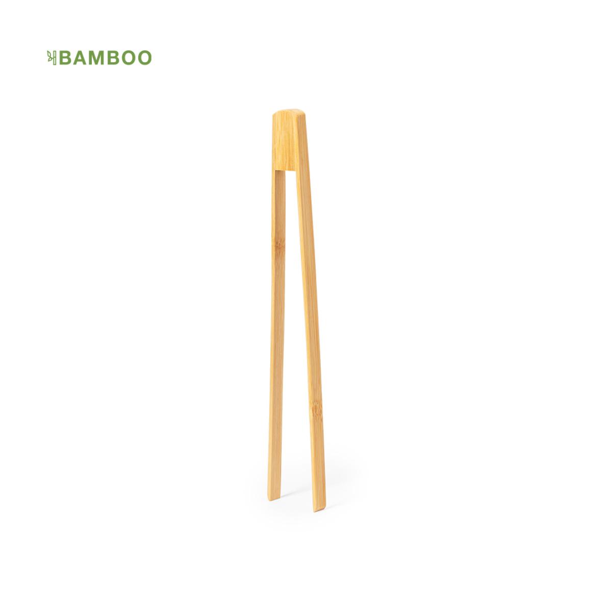 Kitchen tongs made in soft and flexible bamboo. Presented individually in a Recycled paper bag. Materials such as bamboo encourage the use of natural raw materials, reducing pollutant emissions. In addition, bamboo comes from a highly resistant and versatile plant, with rapid growth and regeneration, making of it an excellent alternative to traditional wood.