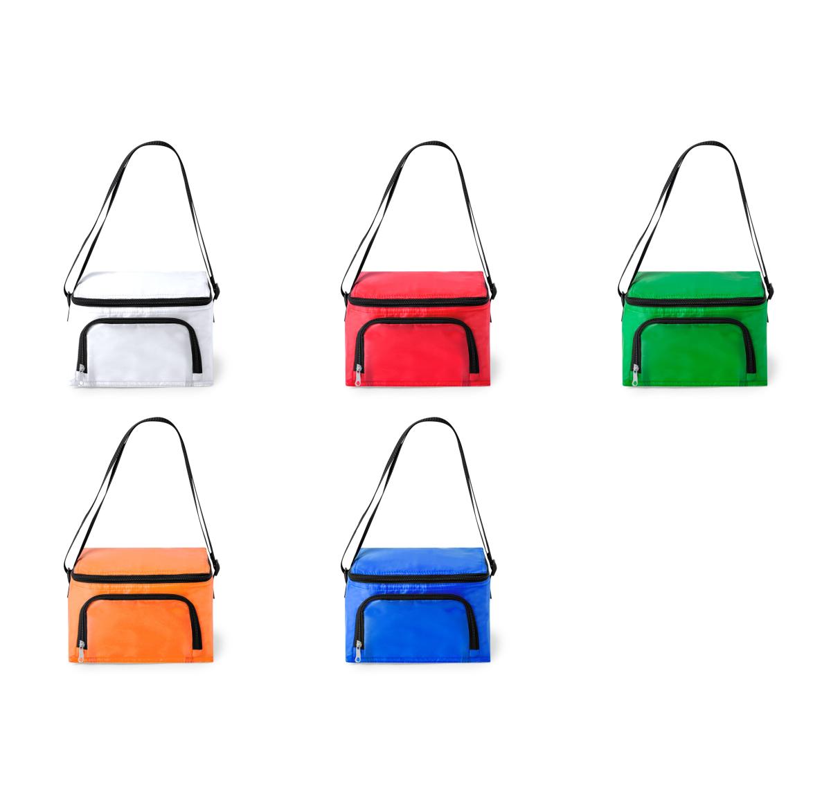 Heavy duty cooler with zip closure, large front pocket and adjustable shoulder strap. Available in a wide range of colours, with black details and accessories. Presented in individual recycled bag.