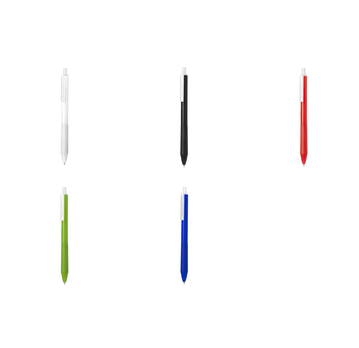 Push-button ball pen made of recycled ABS. Transparent clip and push-button, with smooth finish barrel in assorted colours and matching grip. Recycled ABS logo on the top of the ball pen. In blue ink. RABS is a highly recyclable and highly resistant plastic with a multitude of applications that make of it an eco-friendly solution. With RCS certification, guaranteeing its recycled origin.