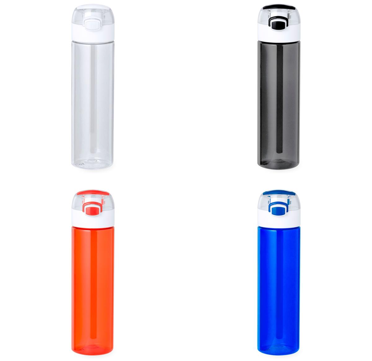 Bottle made of Tritan with a capacity of 650 ml. Ingenious spring-loaded lid, easy to open by pressing the front button, with safety lock. Optimal sealing of the screw cap and handle for convenient carrying. Available in a wide range of colours and presented in an individual kraft design box. 650 ml
