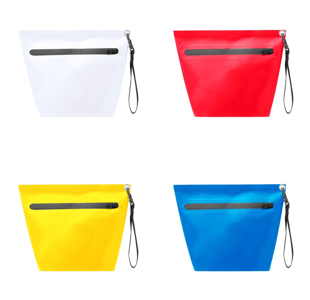 Waterproof multi-purpose bag made of resistant PVC. Security zip closure, with carry handle and swivel carabiner in plastic. Available in a variety of colours, with black zip and handle.