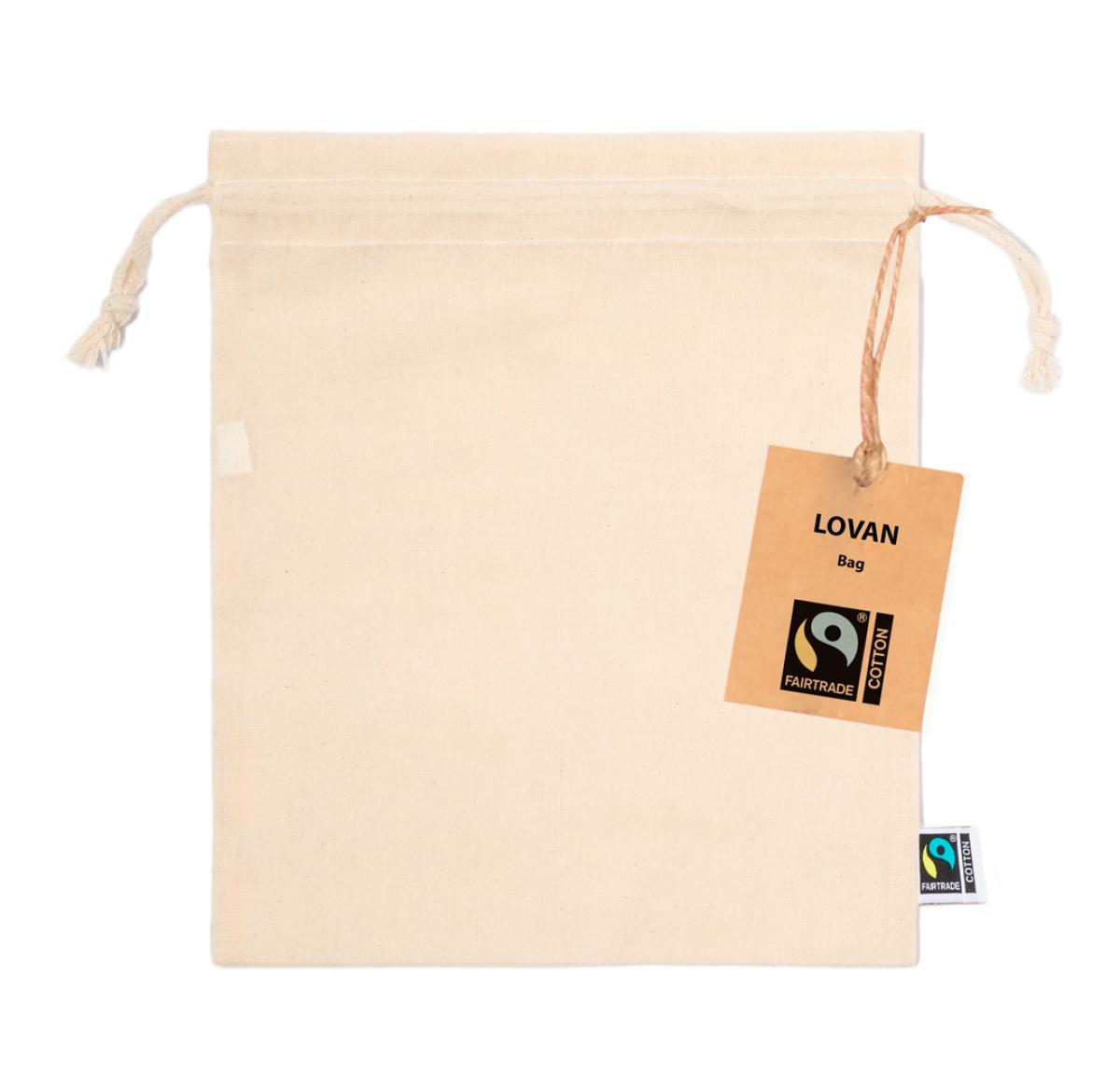 Fairtrade line bag, made in 100% cotton of 105g/m2 and in natural colour. Stitched finish, with self-closing drawstring and including Fairtrade label and hangtag in recycled cardboard. With Fairtrade certification, an alternative to the conventional trade system that pursues the development of peoples and the fight against poverty.