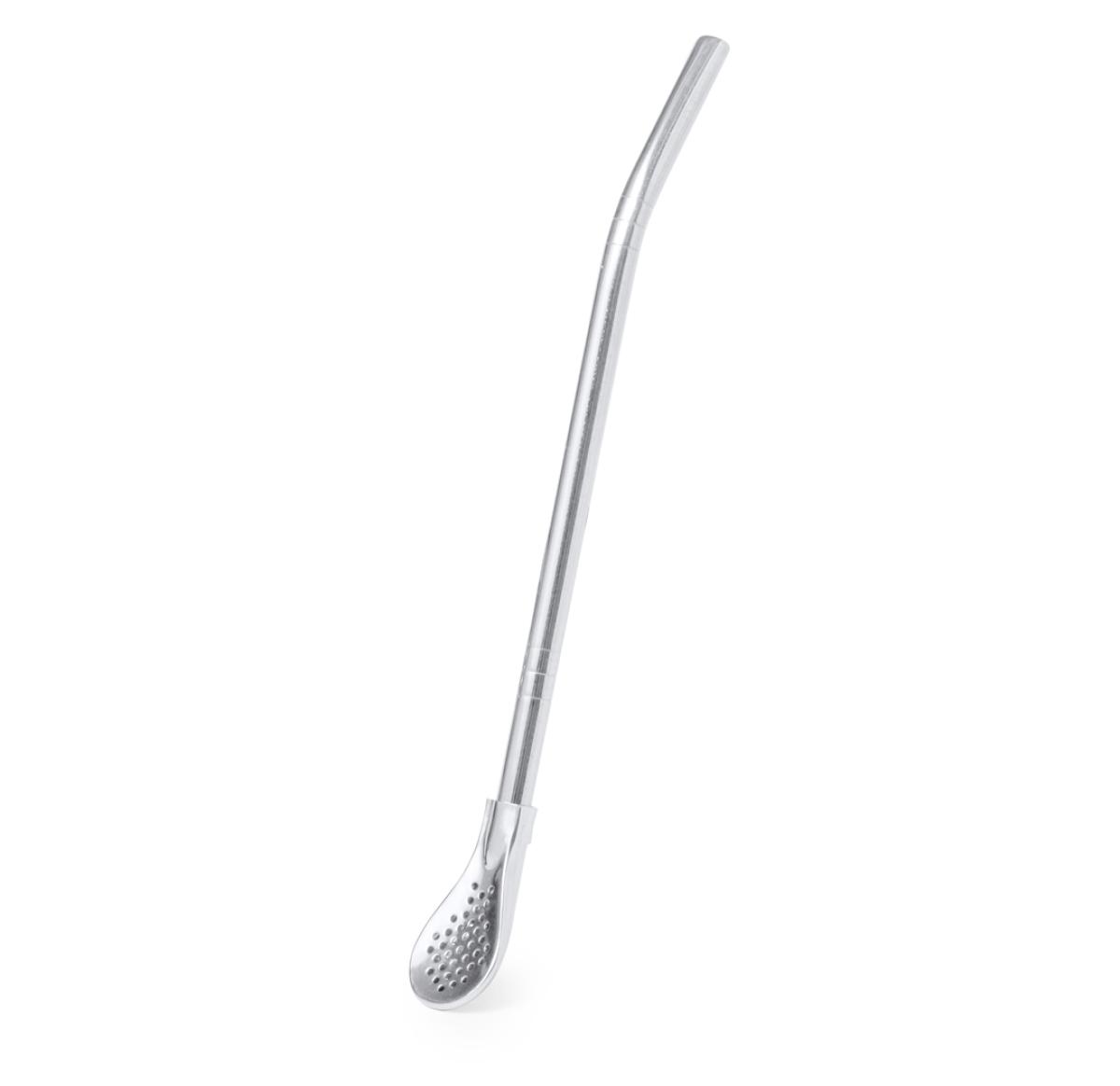 Useful stainless steel stirrer with straw. With its elegant and functional design, this accessory is essential for hot or cold drinks. Integrated straw for easy drinking and a practical spoon with filter at one end. Presented in an individual bag.