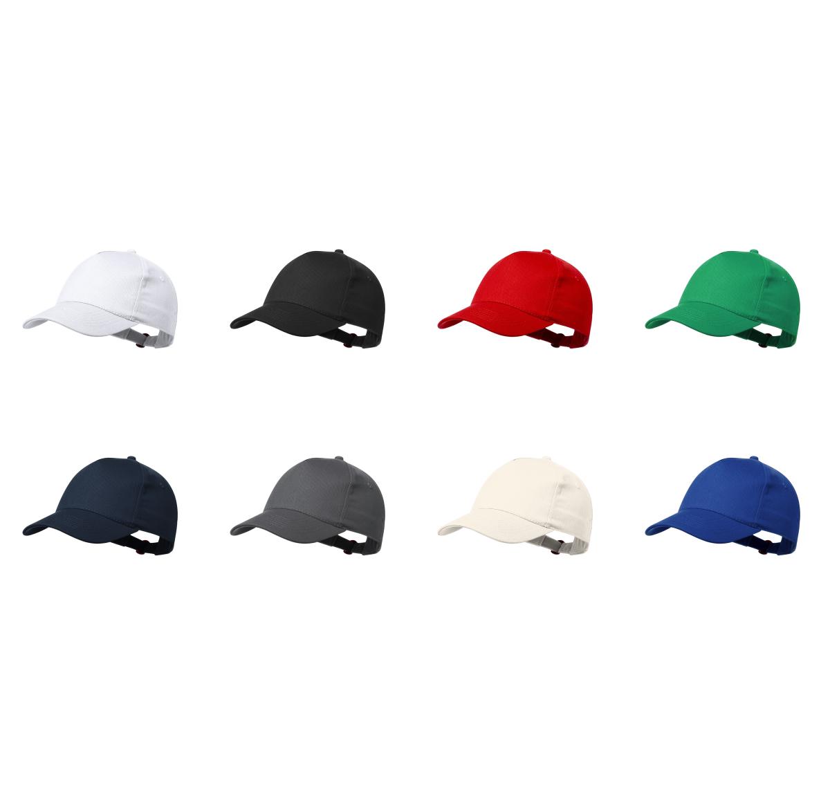 5 panel cap in 100% recycled cotton with soft finish. With adjustable buckle fastening and embroidered ventilation holes. Available in a wide range of colours, with logo on label.