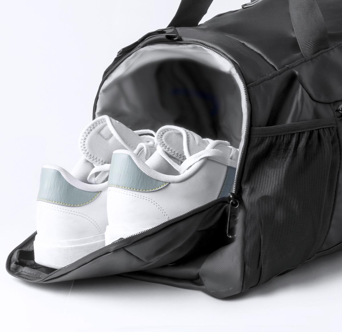 Backpack/bag made of resistant and soft PU leather. Its central compartment is closed with a double zip puller. It also has an independent side pocket and an additional one at the other side, both with zip closure. At the base there is a pocket specially designed for shoes. It also includes an outer mesh pocket. It offers three carrying options: as a backpack, with padded, folding handles; as a handbag; or as a shoulder bag, with an adjustable shoulder strap. The zips are discreetly concealed for a smart design. Presented in an individual bag. Padded Back and Shoulder Straps. Shoe Compartment