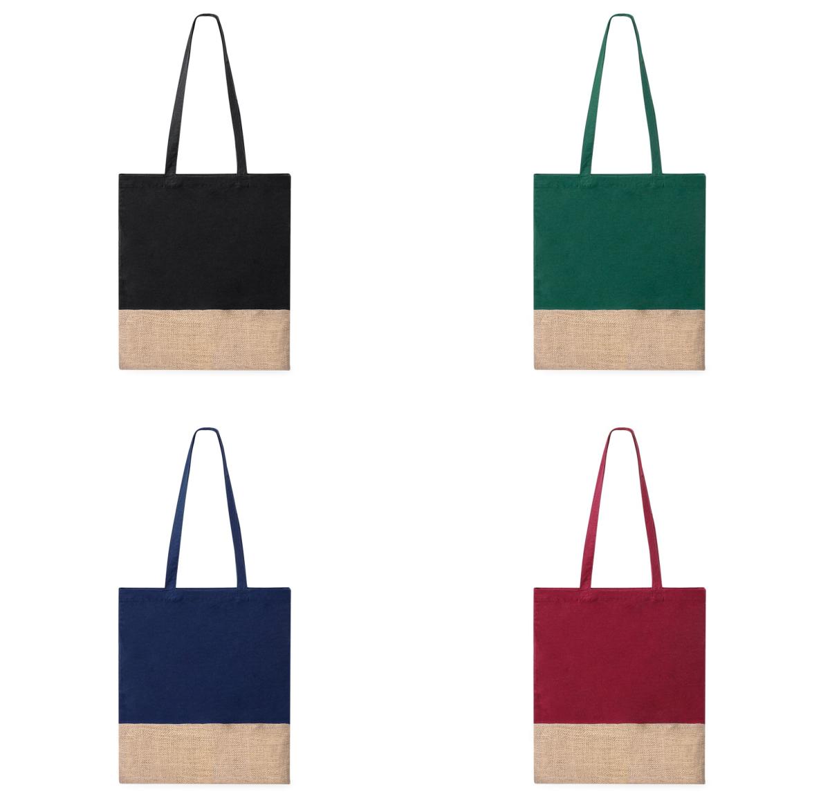 Tote bag in 100% cotton material 120 g/m2 in combination with jute. Comfortable flat handles and available in various colours. Resistance up to 8kg weight.