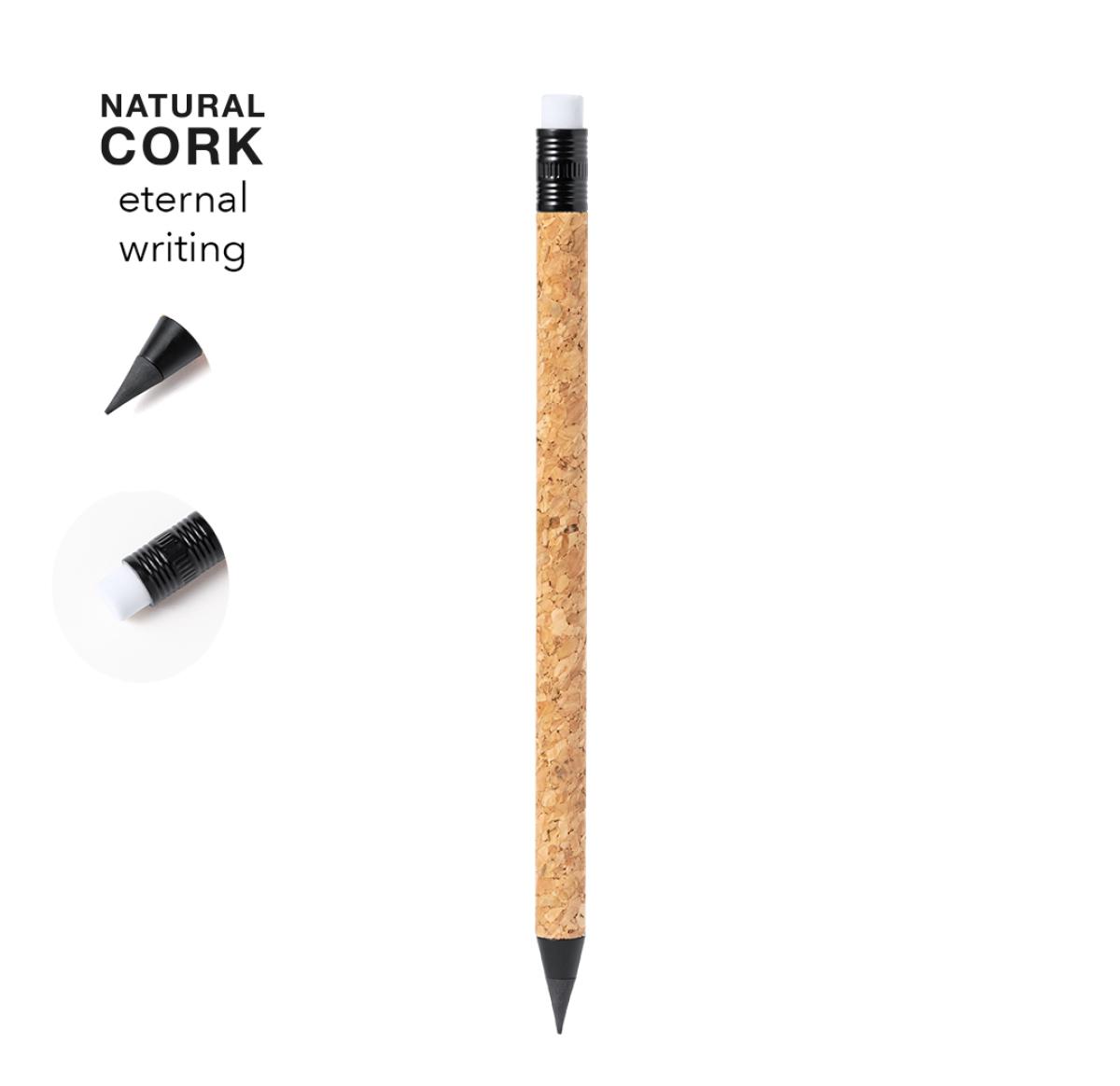 Eternal pencil made of cork. Reusable and with infinite writing, to always use the same pencil and not generate waste. Including eraser on the top of the pencil. Made with plant-based elements to promote the use of natural raw materials and reduce polluting emissions.