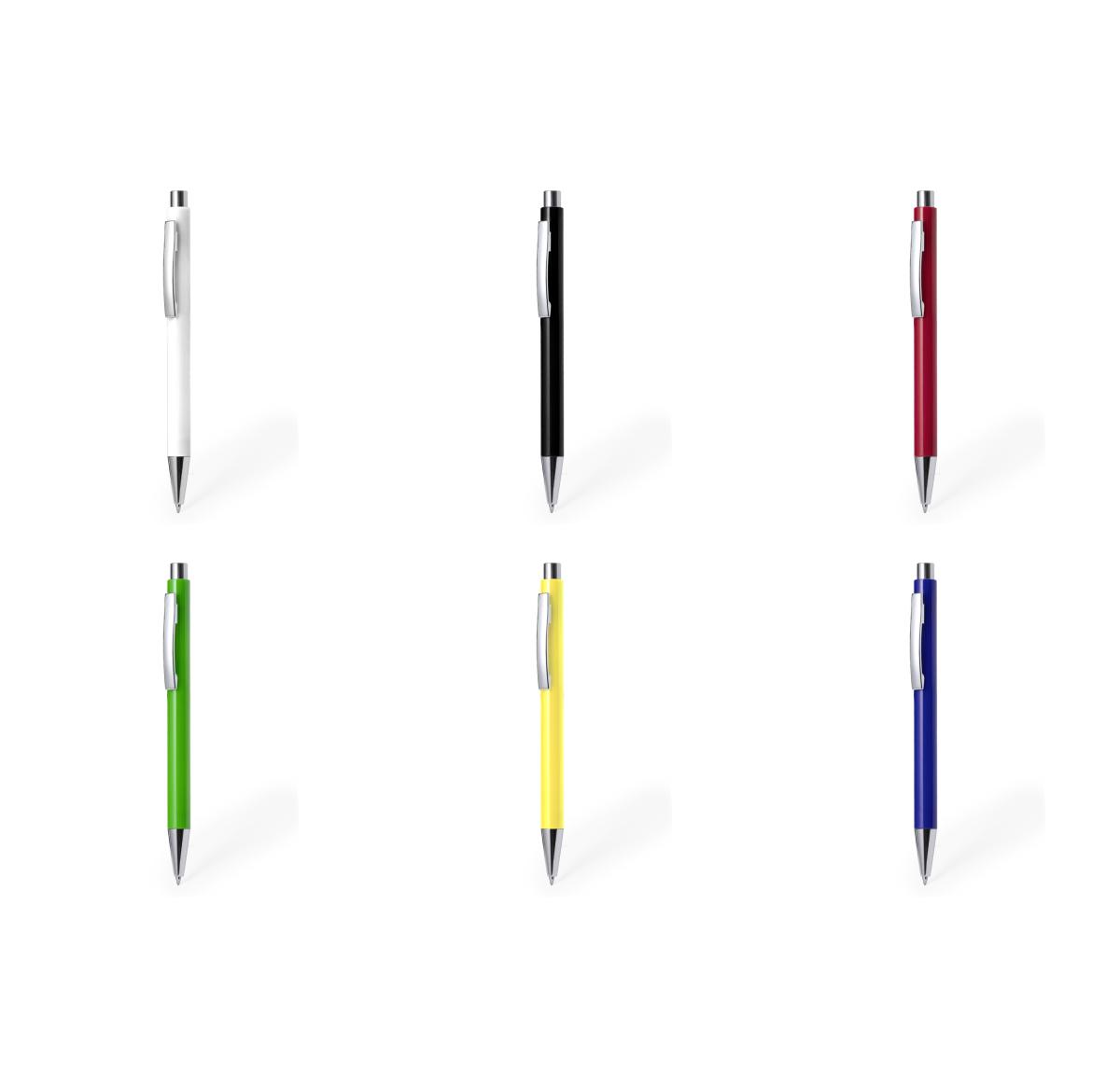 Push-button mechanism ball pen in durable ABS. Stylish barrel in a variety of eye-catching colours, with top button, clip and tip in chrome finish. Blue ink.