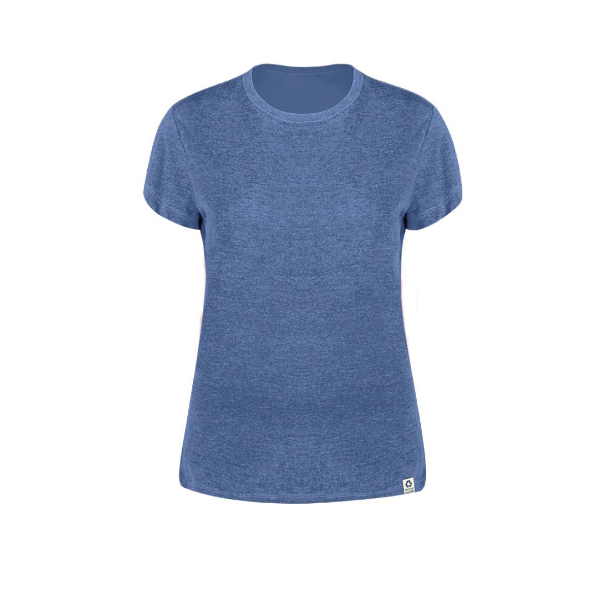 Woman T-shirt made of 60% recycled cotton in combination with RPET, single jersey fabric, 150g/m2. Available in a wide range of colours, with recycled logo on the label and in sizes S, M, L, XL, XXL. RPET material is made from recycled plastic, thus promoting the reuse of plastic waste and helping the sustainability of the planet.
